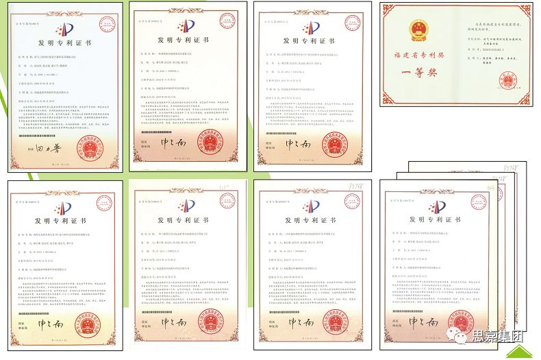 思嘉发展至今,曾先后获得授权专利161件,目前正在申请的发明专利达61件,专利技术均实现产业化,并在实施中取得良好的效益。思嘉专利也曾获得福建省专利一等奖的荣誉。
